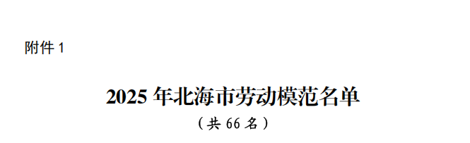 近日,中共北海市委員會、北海市人民政府印發(fā)《關(guān)于表彰北海市勞動模范和先進工作者的決定》(北委〔2025〕225號),對在全市高質(zhì)量發(fā)展中涌現(xiàn)出的先進模范人物予以表彰,授予羅成等66人北海市勞動模范稱號,授予裴潤濟等34人北海市先進工作者稱號。其中,我公司周明梅同志榮獲“2025年北海市勞動模范”稱號。