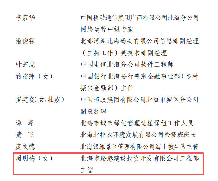 喜報 | 市路港公司1人榮獲北海市勞動模范稱號